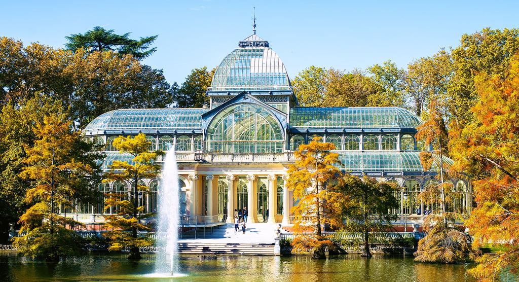Un pulmón verde en pleno centro de Madrid. Puedes pasear entre fuentes, esculturas, el Palacio de Cristal (que a menudo tiene exposiciones gratuitas) y alquilar una barquita en el gran estanque.